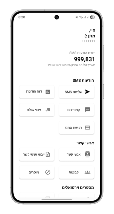 הפלטפורמה החכמה לשליחת הודעות SMS לעסקים. מבצעים, תזכורות ועדכונים – ישירות מהאפליקציה, במינימום מאמץ ומקסימום תוצאות.
